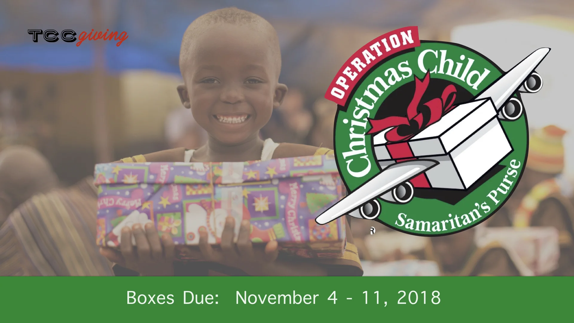 Operation Christmas Child shoeboxes will be available soon. Operation Christmas Child partners with churches worldwide to reach boys and girls with the Gospel of Jesus Christ. After receiving shoebox gifts, many children are discipled through a bible study course. See the connect desk to pick up boxes and learn more.