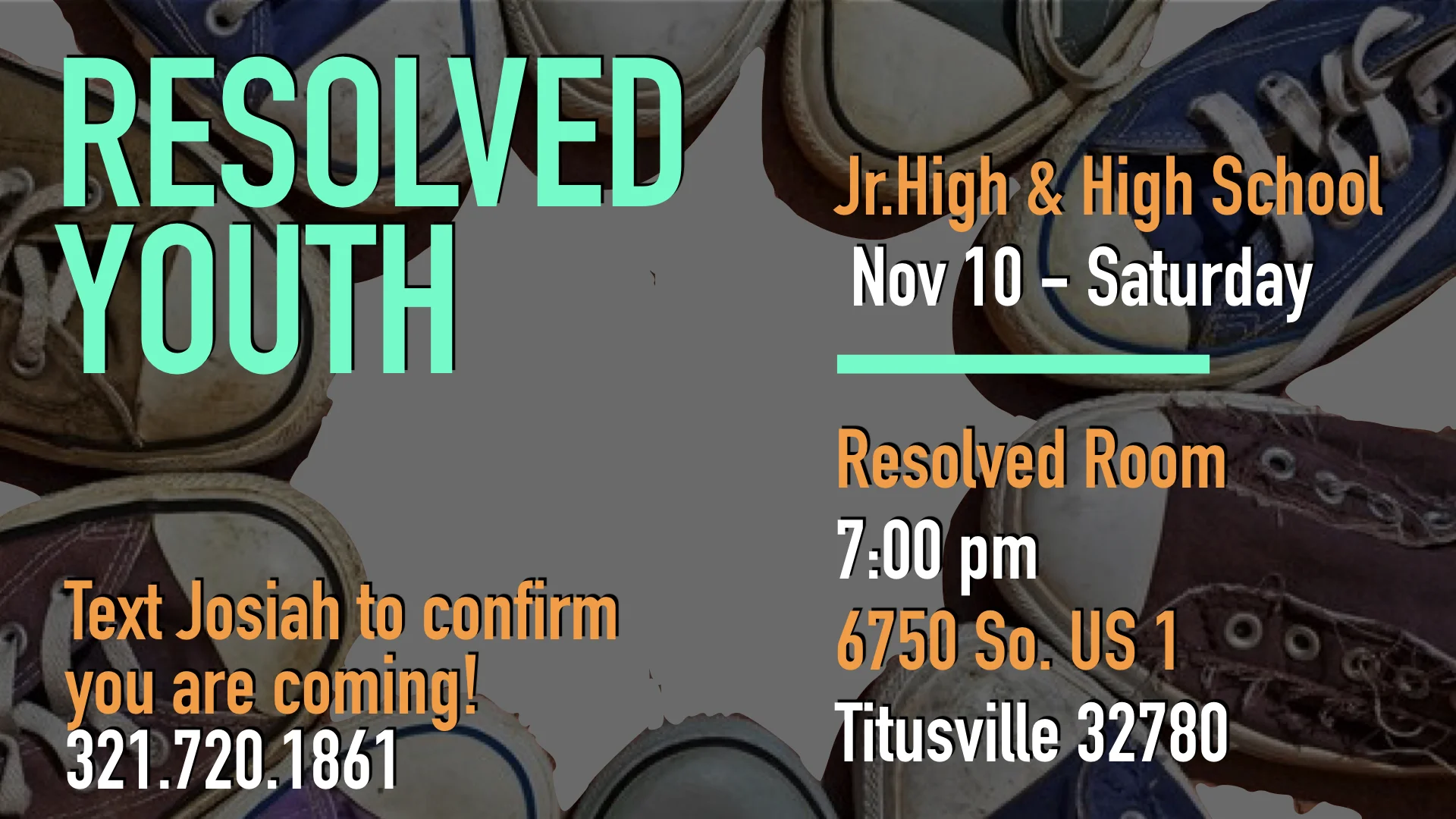 Resolved Youth Saturday, November 10, 2018 7:00 PM 9:00 PM 19:00 21:00 Trinity Community Church 6750 South Washington Avenue Titusville, FL, 32780 United States (map) Google Calendar ICS Resolved: Youth & Parent MinistryOctober 6 - November 10 - December __Location: Trinity Community Church: Resolved RoomTime: 7:00pm
