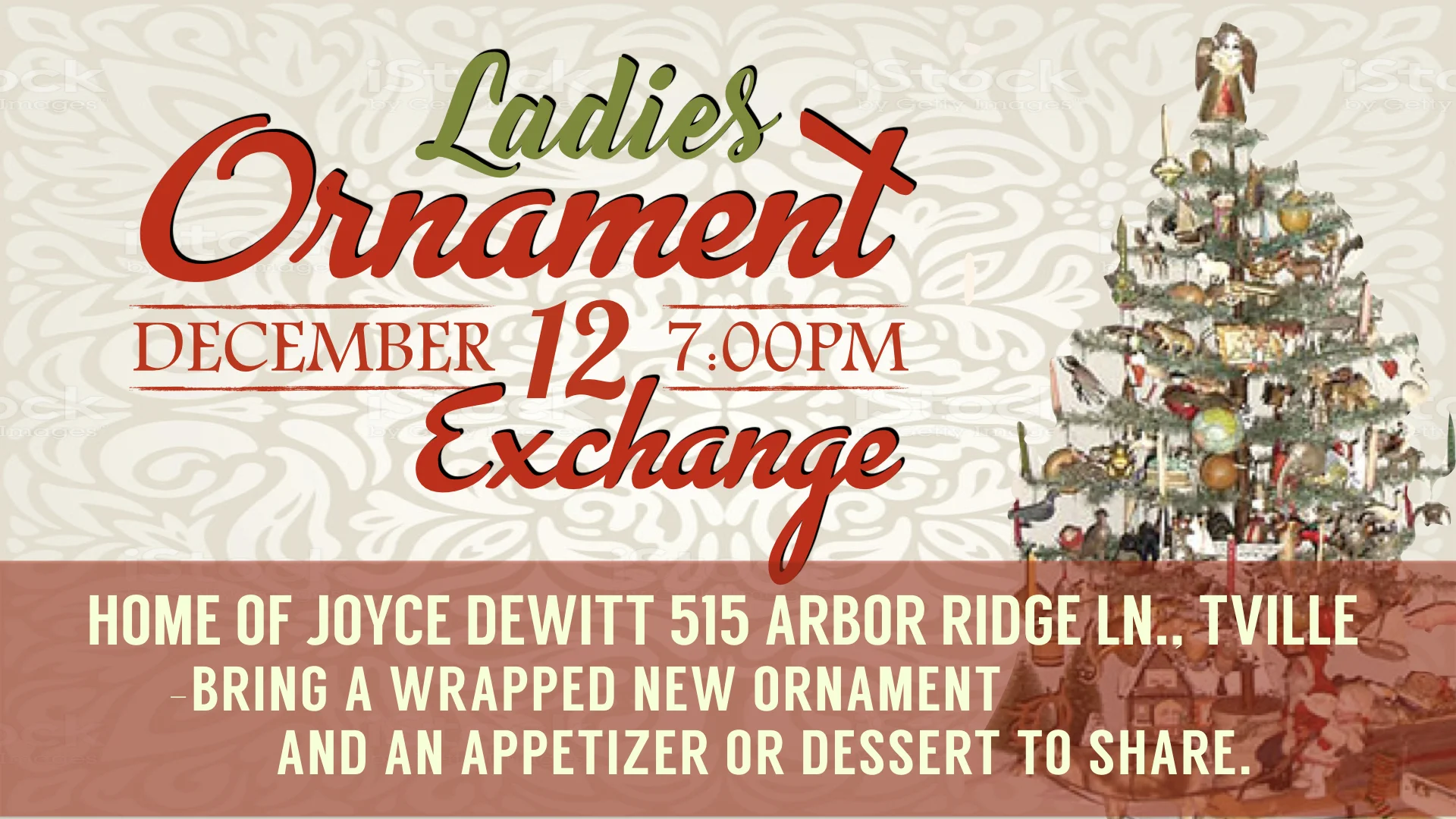 All ladies invited to this years “Ladies Ornament Exchange.”